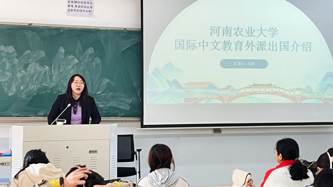 活动伊始,吴亮老师就本院国际中文教育专业的研究生招生政策进行了专场分享。她详细介绍了河南农业大学汉硕专业的招生人数、优势特色等相关信息,为有意继续在本校深造的学生提供了宝贵的经验。除此之外,吴亮重点介绍了国际中文教育外派出国的项目,并邀请目前在国外实习的我院国际中文教育研究生以视频的方式分享相关外派出国从事对外汉语教学与中华文化传播的经验,引起了同学们的广泛兴趣。