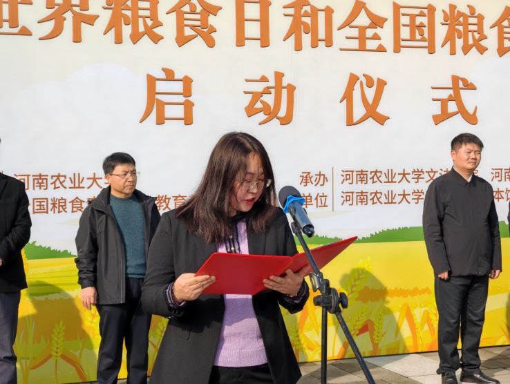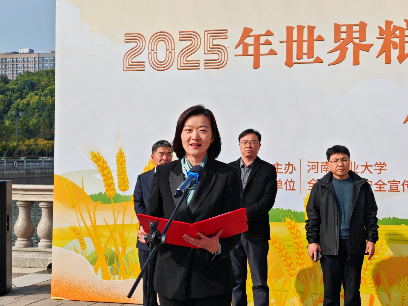 活动伊始,马菲致辞,他强调,粮食安全乃“国之大者”,节约减损就是增产,全校须把“厚生丰民”使命贯穿科研、教学与生活。近年来,学校育成系列高产抗病作物新品种,累计推广逾3000万亩,助农增收50亿元;面对今年黄淮地区连阴雨,专家团及时提出分类播期、补肥壮苗方案,为秋播稳产保驾护航。他号召师生以科研增产、以节约保供,让“中国饭碗”盛满更多“河南粮”“农大种”,并宣布2025年全国粮食安全宣传周正式启动。