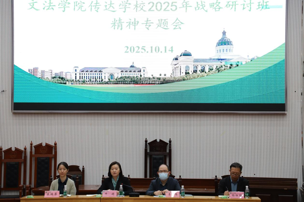 本网讯(通讯员 张笑笑)10月14日下午,我院召开传达学校2025年战略研讨班精神专题会。我院全体教职工参会,我院党委书记牛娟主持会议并作讲话。