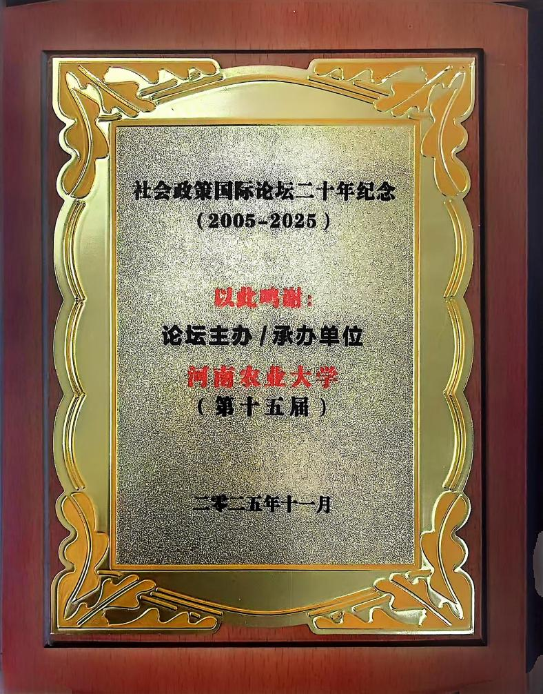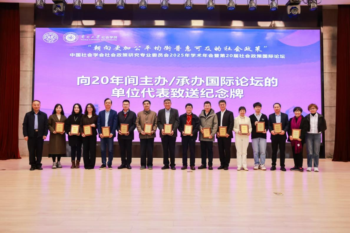 在开幕式的重要环节中,刘风作为第十五届社会政策国际论坛主办单位代表,上台领取“社会政策国际论坛二十年纪念(2005-2025)”纪念牌,这既是对我院过往承办论坛工作的高度肯定,也彰显了我院在社会政策研究领域的行业影响力与学术参与度。