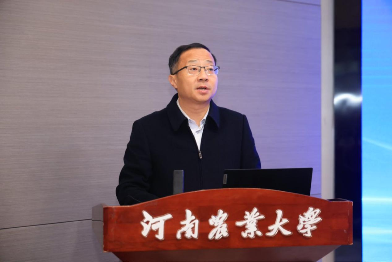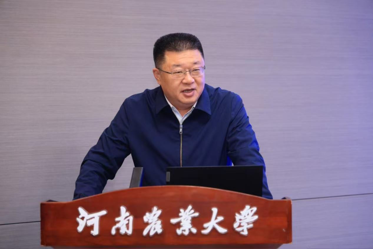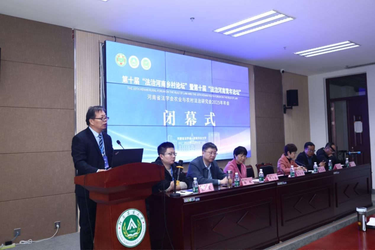 河南省法学会农业与农村法治研究会副会长、我院副院长杨红朝教授发表讲话,他指出,河南作为国家粮食生产核心区,肩负着保障国家粮食安全的重任。建设农业强省,必须依靠有力的法治保障。从耕地保护、种业振兴到农产品质量安全、农业经营创新,再到农民权益维护与乡村治理完善,各环节都需法律的规范与支撑。他强调,研究会将凝聚智慧,深化研究,为推动农业农村法治建设、服务农业高质量发展贡献力量。