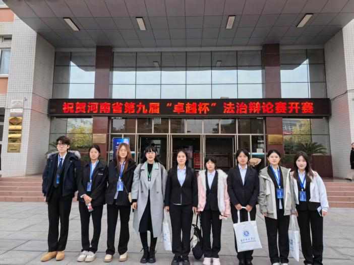 本网讯(通讯员 刘中娅)为深入贯彻落实我省“八五”普法规划要求,进一步提升法学学子的法律意识、法律素养及学法用法能力,推动法学教育高质量发展,在我院团委书记王鹏举的指导下,11月13日至14日,法律系教师王菲老师带领法学专业刘中娅、潘雨鑫、罗梓涵、陈馨雨、王淼、王鼎竣、王若水、周钰萌八名同学组成的辩论队参加由中共河南省委全面依法治省委员会守法普法协调小组、河南省司法厅、河南省教育厅、河南省法学会联合主办,南阳师范学院承办的河南省第九届“卓越杯”法治辩论赛。本届赛事汇聚了全省20多所卓越法律人才教育培养基地高校参赛,为法学学子提供了切磋技艺、交流思想的宝贵平台。