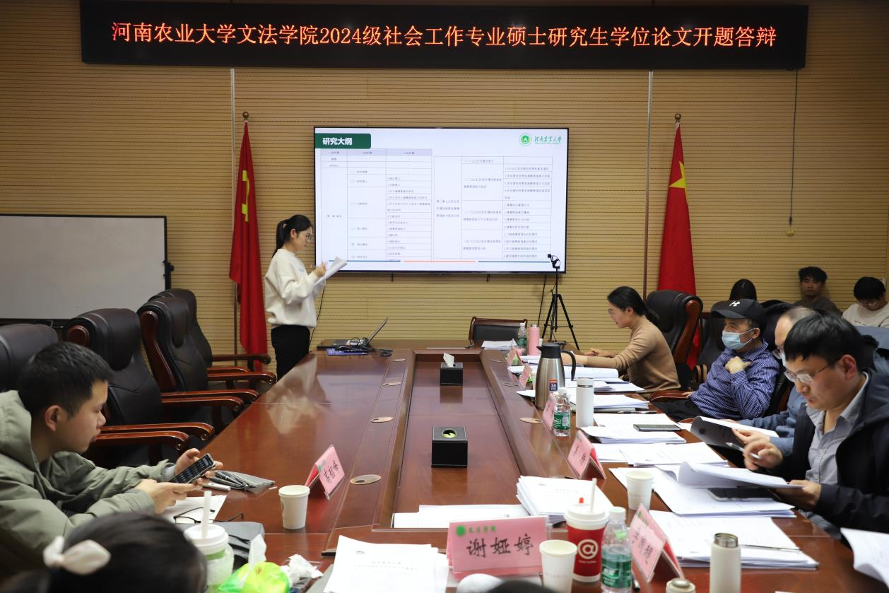 本网讯(通讯员 赵怡 图片 刘新飞)为扎实推进社会工作专业硕士研究生培养工作,强化毕业论文实践性与规范性,确保研究方向贴合社会现实需求。12月6日,我院2024级社会工作硕士研究生开题答辩会在繁塔楼A405成功举办。郑州市市委社会工作部基层治理二处处长王自兴及我院社会学系12名硕士生导师共同组成评审团队,21名2024级社会工作硕士研究生参加本次开题答辩会。