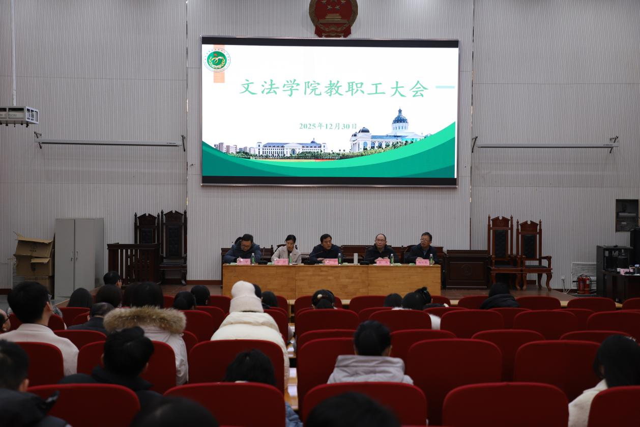 本网讯(通讯员 陈洁玉)12月30日下午,我院在模拟法庭召开全体教职工大会。我院领导班子及全体教职工参会,会议由院党委书记赵宁主持。