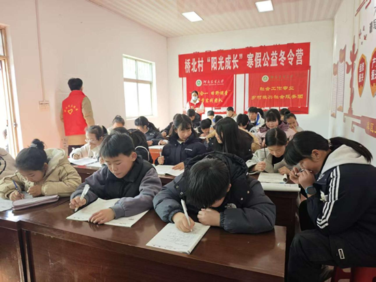 本网讯(通讯员 李朋娟)近日,我院驻河南省洛阳市嵩县陆浑镇桥北村实习实训基地的25级社会工作专业研究生团队,组织开展了2026年“阳光成长”公益冬令营活动。本次活动由团队成员李朋娟、申宇、姜欢芯共同组织,秉持“学中有乐、乐中成长”的服务理念,通过丰富的课程与互动,为当地儿童打造兼具趣味性、教育性与支持性的寒假成长空间。