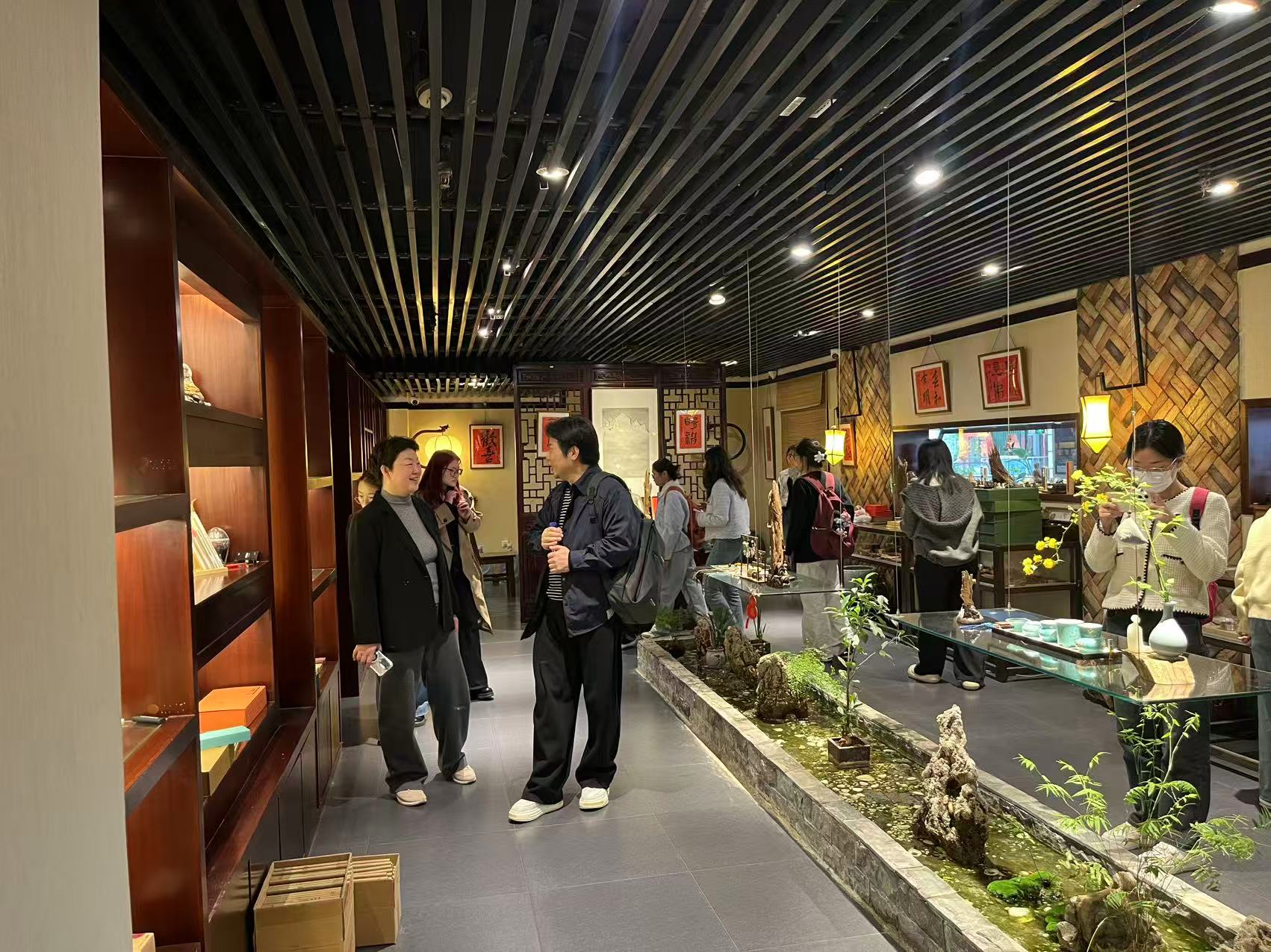 本次活动由天下收藏文化街副总经理杨广玉陪同讲解。活动首站,师生一行来到远山香居非遗制香馆,在制香传承人曹佳的系统讲解下,深入了解传统香道文化,为未来国际中文教育中的文化传播积累了鲜活素材。