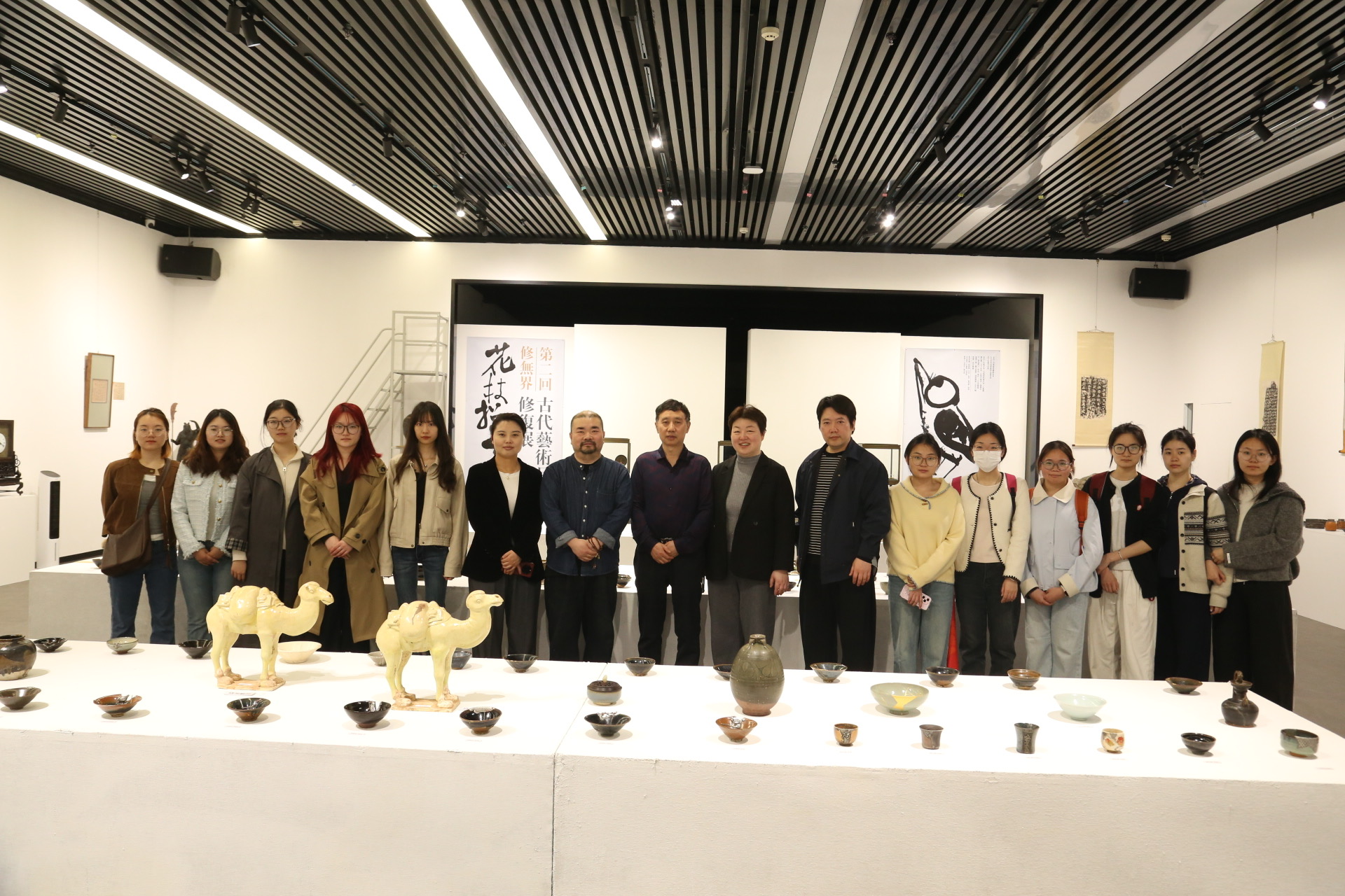 随后,师生一行前往“花枝招盏|第二回·修无界古代艺术品修复展”参观。该展览由天下收藏文化街等单位主办,展出经匠心修复的文物。师生认真聆听策展人冯润生讲解,深入学习文物修复技艺与文化传承意义。