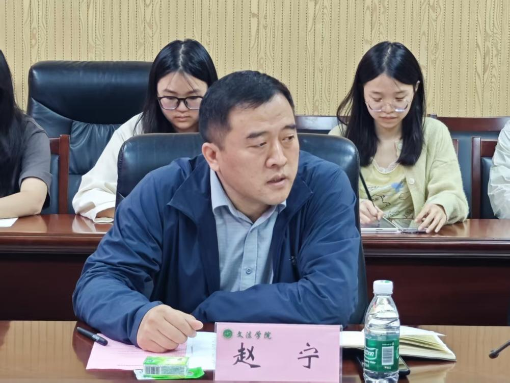 赵宁首先介绍了我院的基本概况,梳理了我院近年来教育科研发展历程及法学专业人才培养特色。他指出,我院法学专业立足农业院校办学优势,深耕涉农法务、基层法治服务等特色培养方向,专业师资力量雄厚,教学成果突出,近年来向全省政法系统、法律服务行业、企事业单位输送了大量专业人才。
