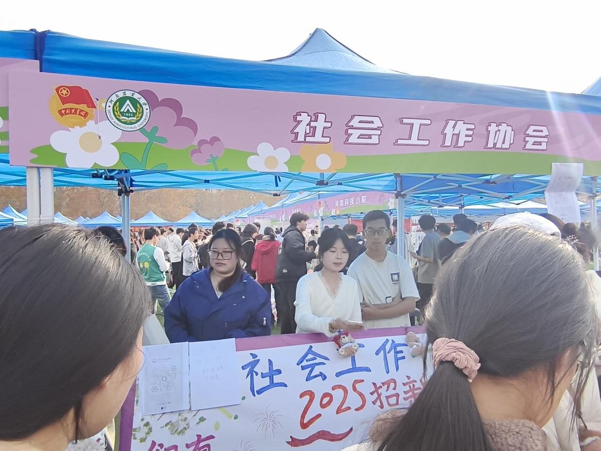 本网讯(通讯员 李一静)11月11日,河南农业大学文化路校区操场洋溢着青春气息,社团嘉年华活动在此热烈启幕。我院社会工作协会、红丝带社团、雅集阁汉韵社、博赢社、法学社五大社团携特色活动亮相,以鲜明的专业定位、丰富的互动形式,在活动中绽放独特光彩,充分展现了我院学子的多元风采与青春活力。